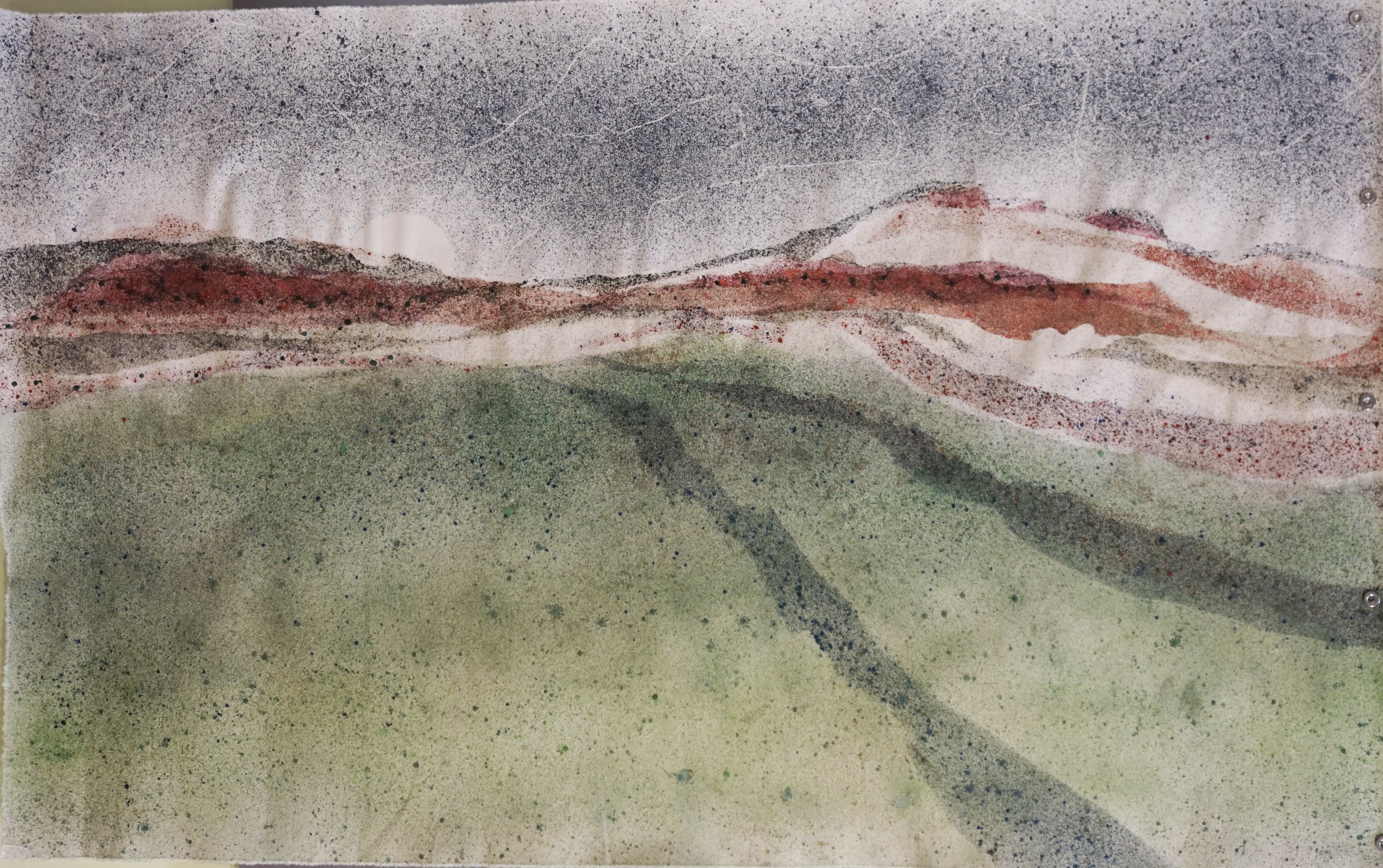 For over 50 years he has made numerous trips to Australia to visit family. This experience has formed the basis for his current artistic endeavors. In 2014 on a side trip to Tasmania he visited the renown MONA (Museum of Old and New Art) where he was enthralled by a massive vibrant painting composed of dyes on raw canvas. On returning to Denver, he experimented in his basement with water dyes. This eventually evolved into his current dyes on raw canvas some of which are pure abstracts and others that have an element of impressionistic landscape.